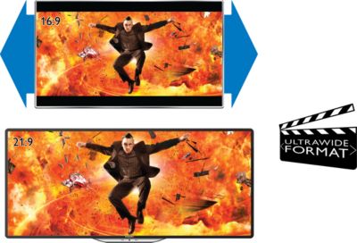 geralmente são filmadas na proporção 2.39:1. As novas TVs Cinema 21:9 (2.39:1)